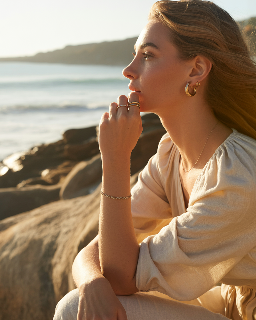 "The first time I wore my jewelry, I couldn’t believe how much it boosted my mood. It’s like the shimmer of the gold lights up my day. I feel more confident, more elegant, and ready to take on whatever life throws at me."