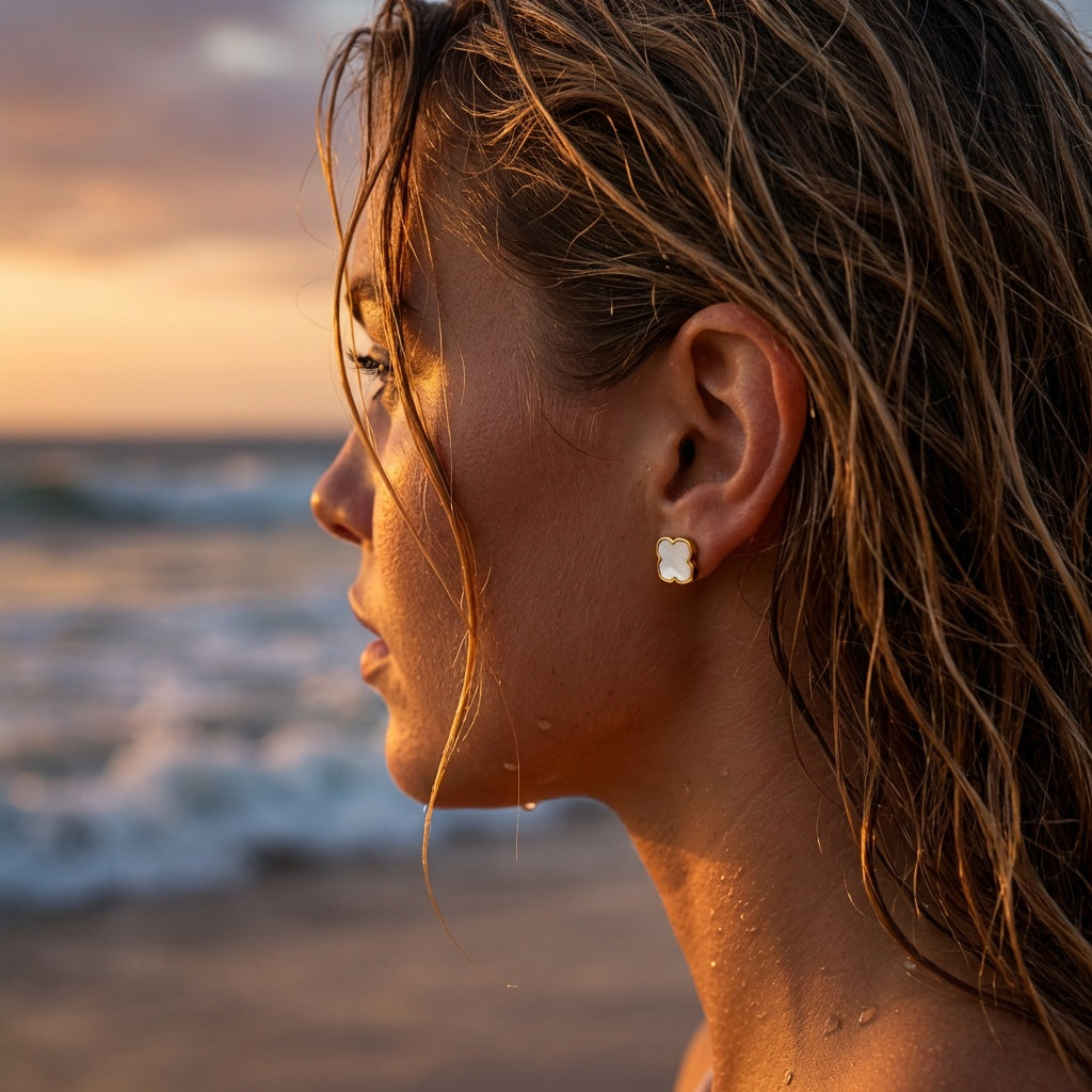 A refined pair of clover studs inspired by timeless forms found in nature. Subtle yet distinctive, their softly sculpted shape reflects the calm beauty of the sea, adding a gentle glow to everyday looks.