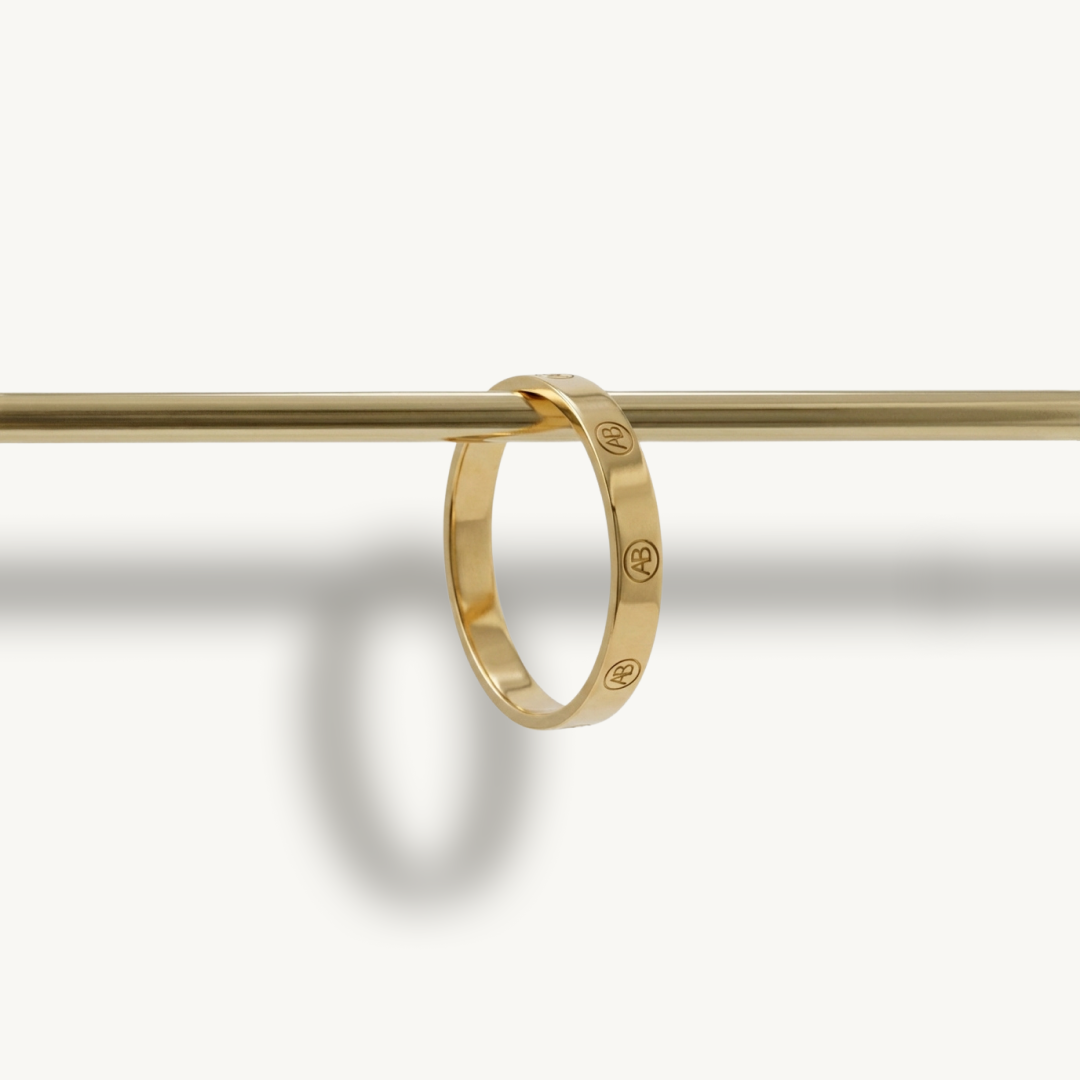 A refined expression of identity, the monogram ring is defined by clean lines and a polished finish. Subtle yet distinctive, the signature detail is integrated seamlessly into the design, creating a timeless piece that feels both modern and enduring.